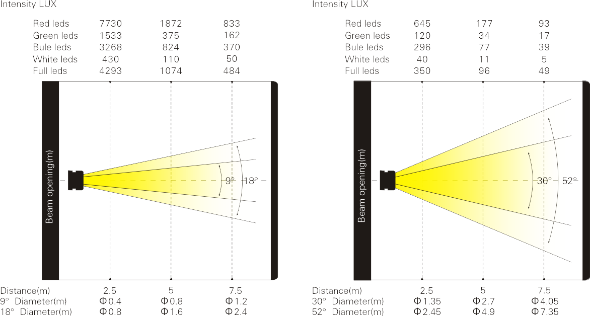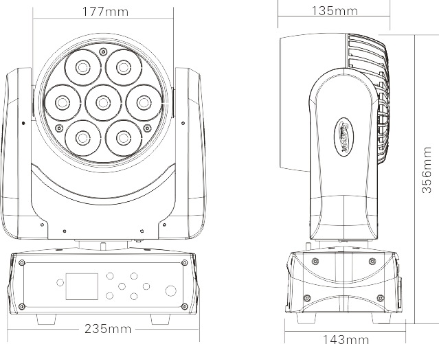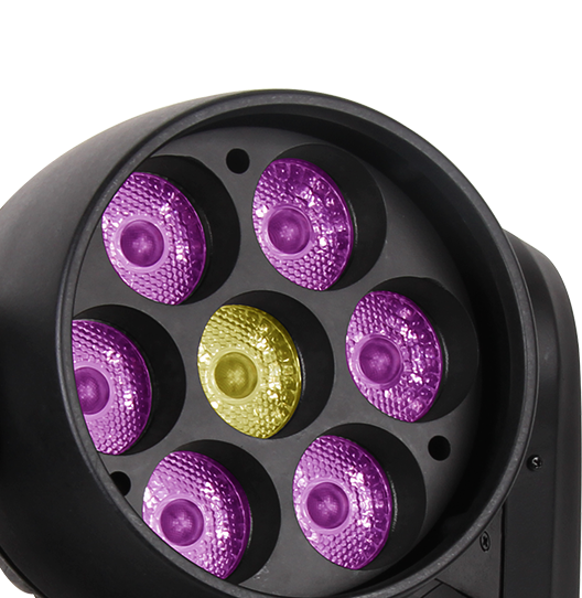 LED類型:7顆15W大功率RGBW 4合1 LED, 達到均勻細膩的混色效果